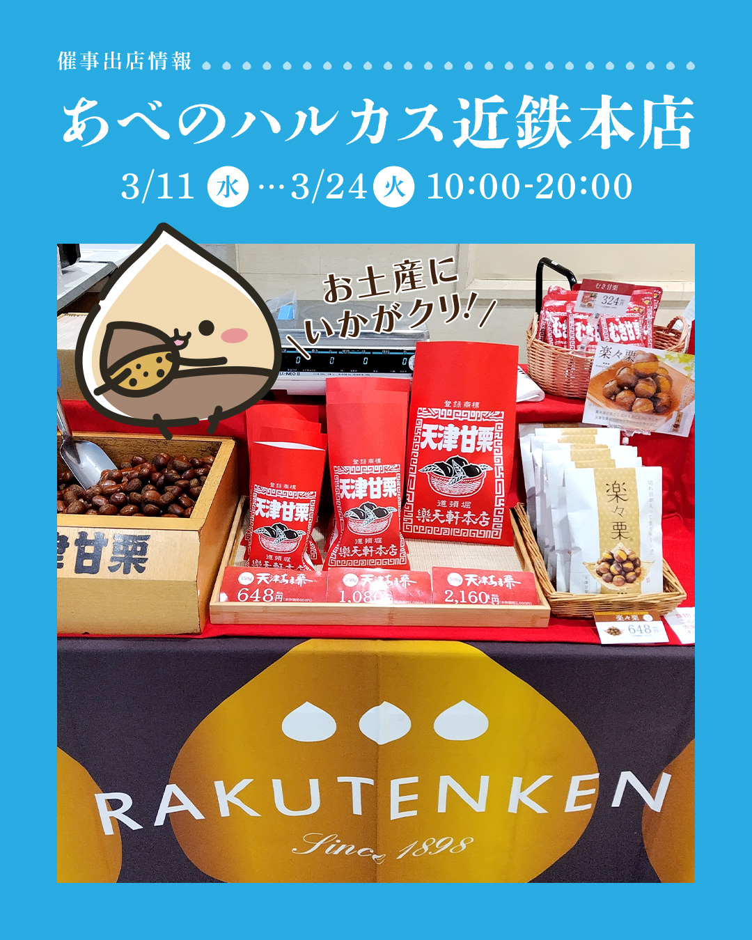 🌰【あべのハルカス近鉄本店】催事出店のお知らせ🌰