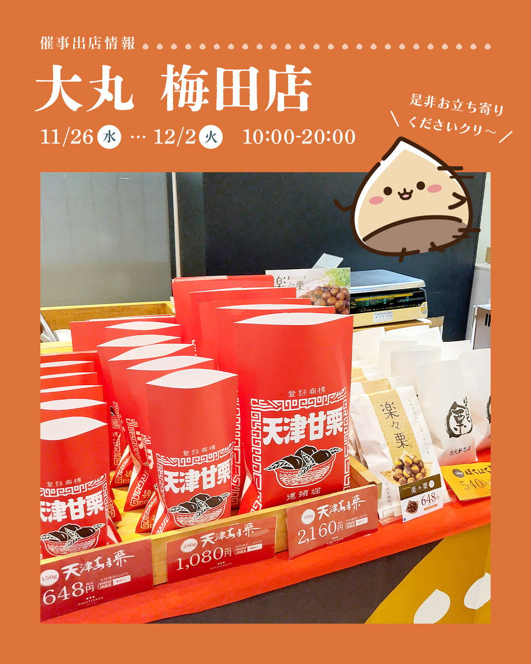 🌰【大丸松阪屋百貨店 梅田店】催事のお知らせ🌰